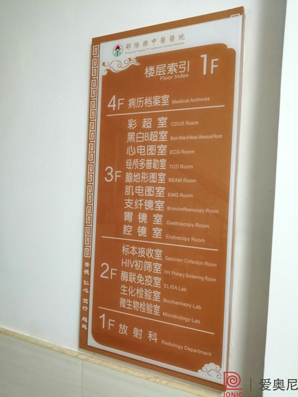 客戶有醫院標識設計制作需求,需要找專業的醫院標識設計公司。湖南愛奧尼標識工程有限公司是一家標識設計、制作公司,擁有15年標識設計經驗,100多名專業生產團隊,獲得ISO9001質量管理體系認證等數10項榮譽資質證書,電話:400-0731-050